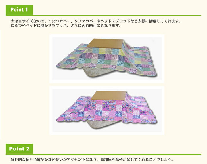 パッチワーク柄マルチカバー「アンリ」長方形大 サイズ(cm) 約200*300生地 綿100% 中わた:綿62%・ポリエステル23%・レーヨン15% ・中国製 ・ネットに入れて洗濯機で洗えます。